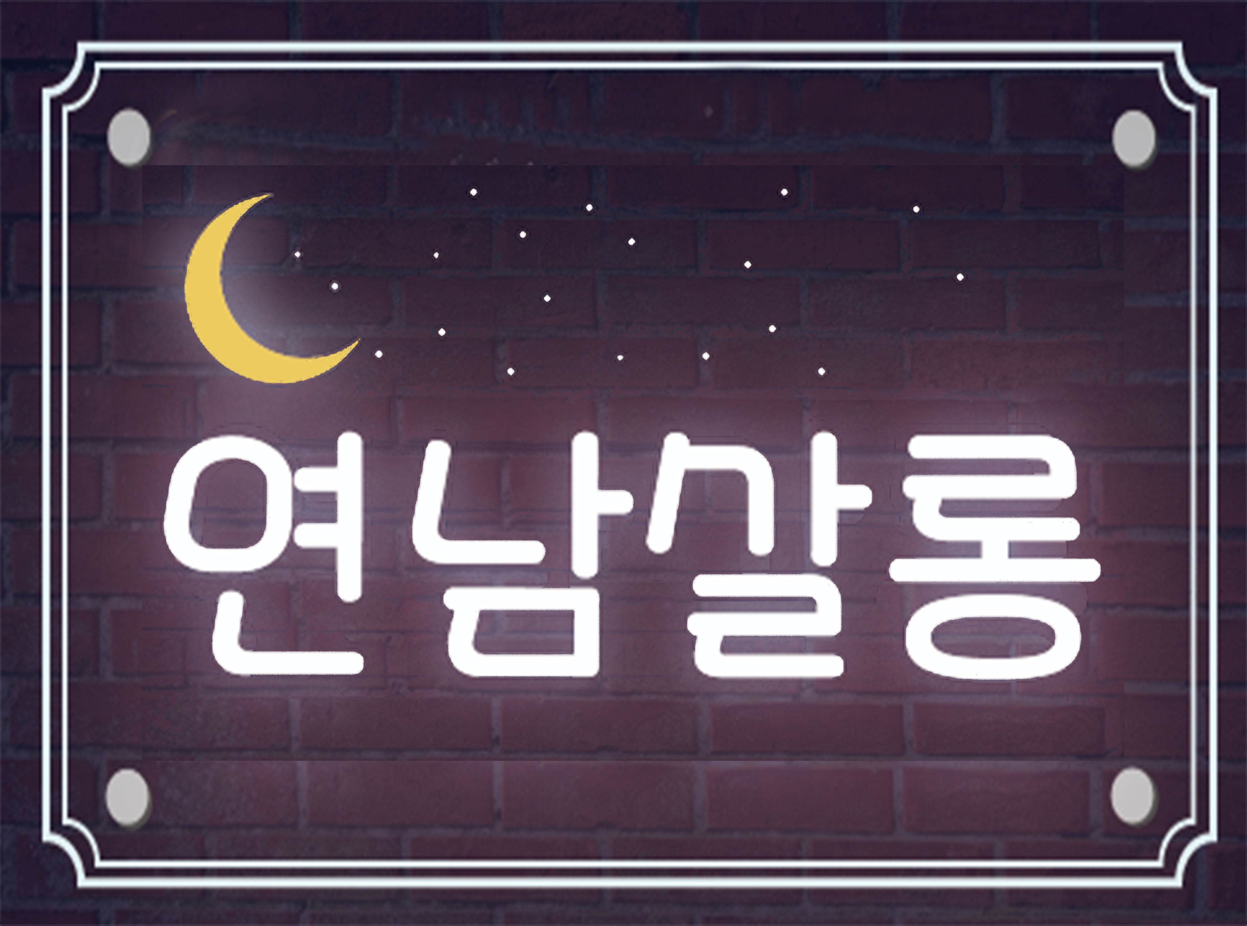 연남동의 핫한 감성을 담아 트렌디하고 세련된 느낌의 기울기가 특징인 서체입니다.