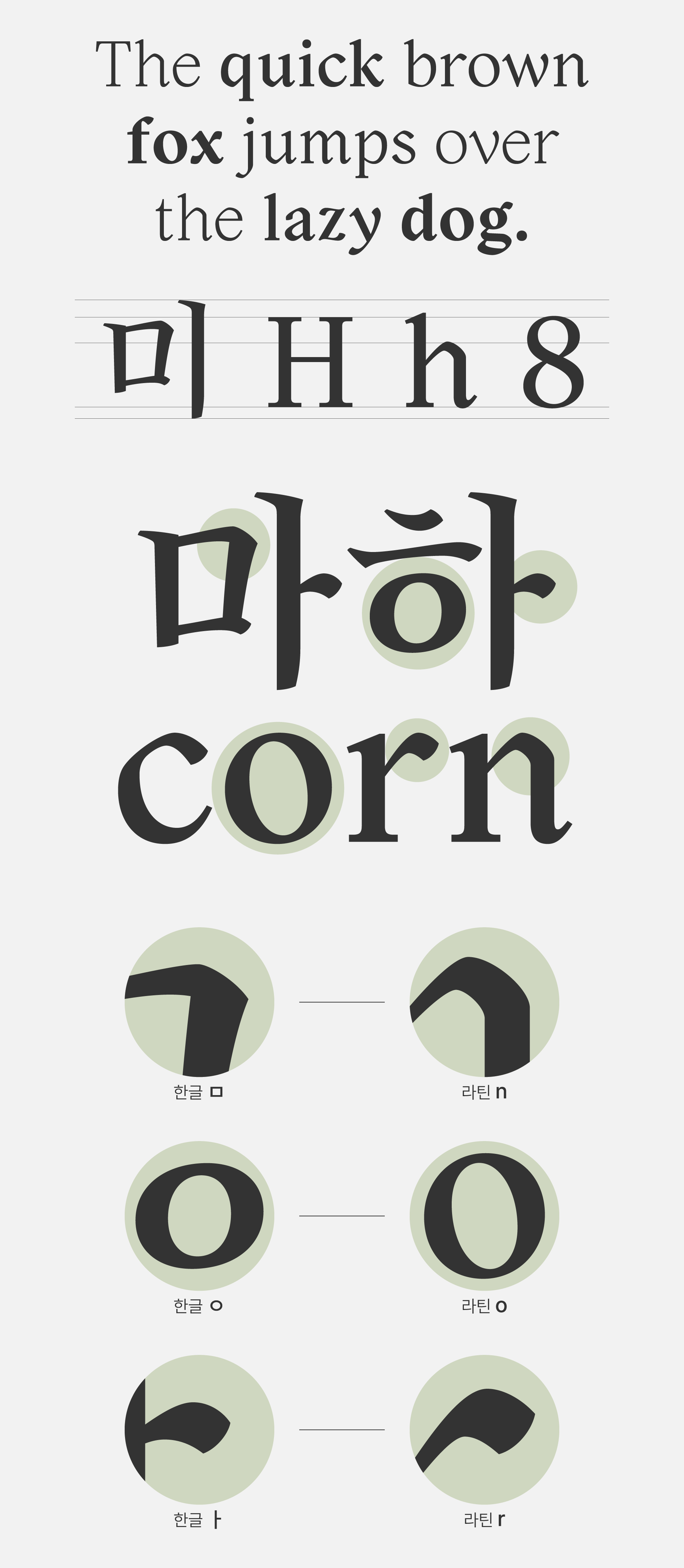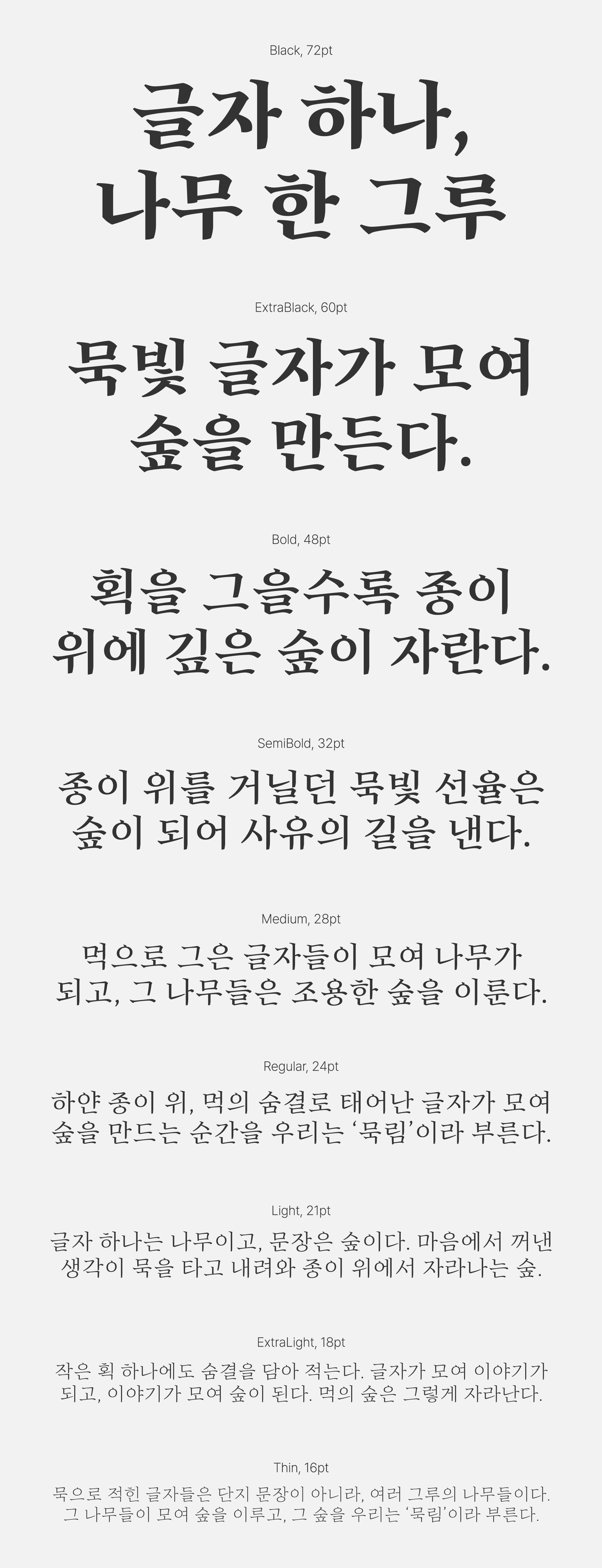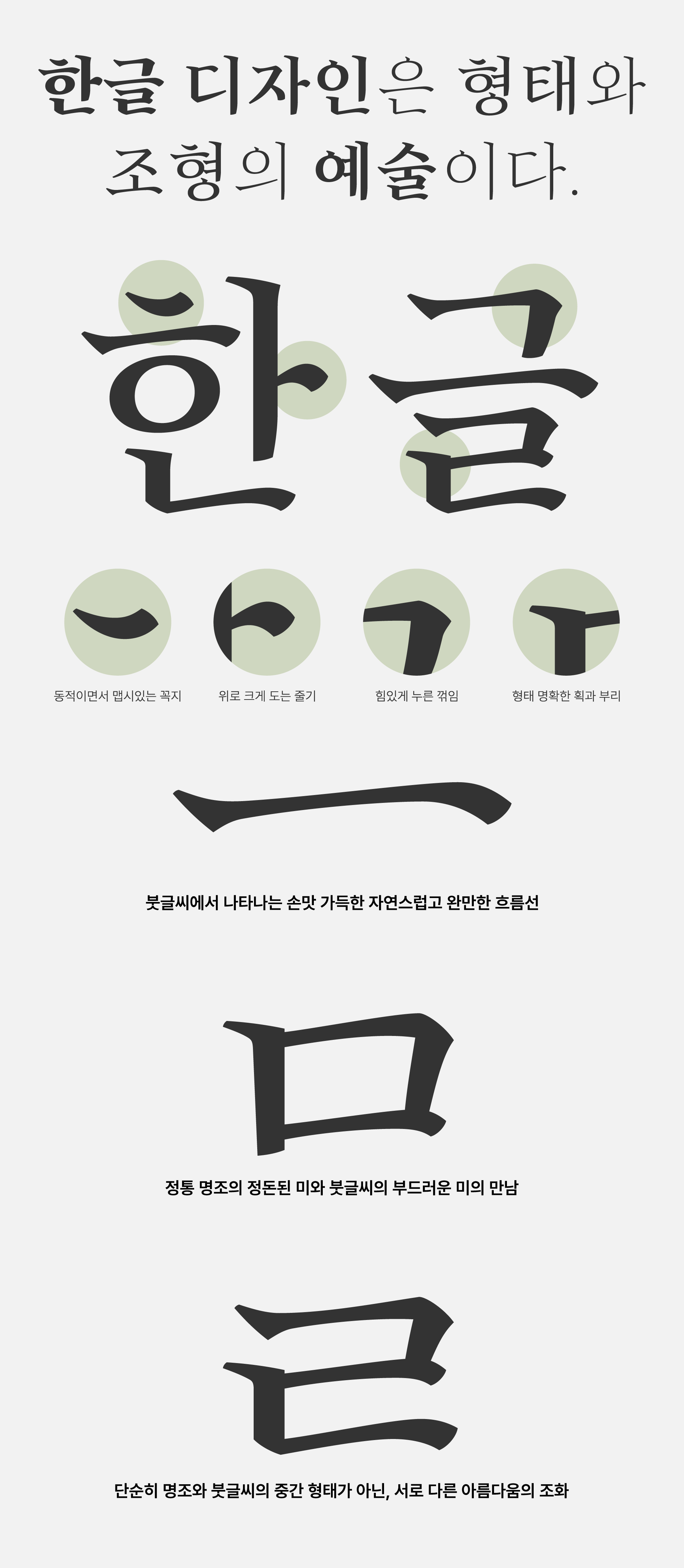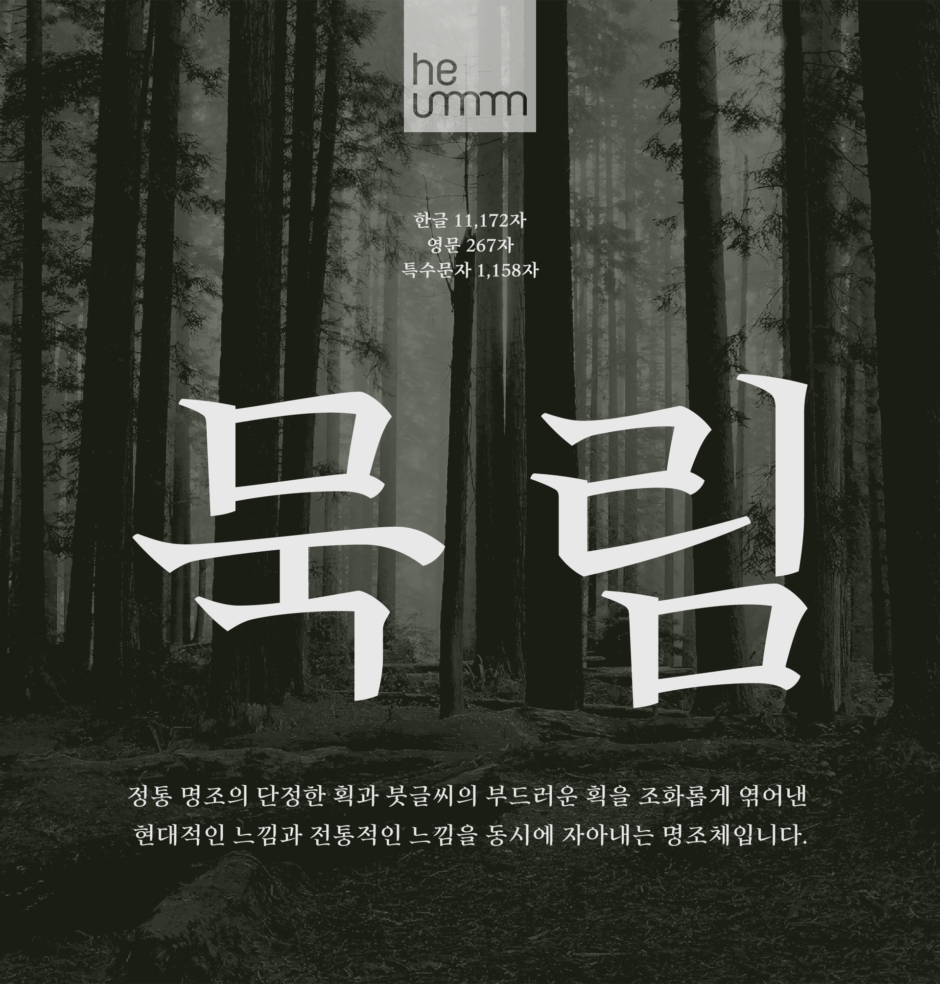 정통 명조의 단정한 획과 붓글씨의 부드러운 획을 조화롭게 엮어낸 현대적인 느낌과 전통적인 느낌을 동시에 자아내는 명조체입니다.